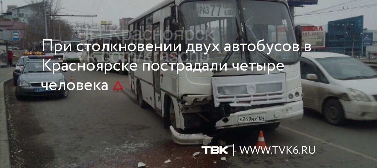 При столкновении двух автобусов в Красноярске пострадали четыре человека