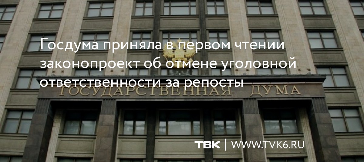 Госдума приняла в первом чтении законопроект об отмене уголовной ответственности за репосты