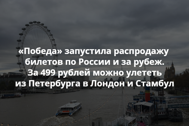 На момент публикации из Петербурга по цене в 499 рублей можно было улететь в Лондон, Стамбул, Волгоград и Чебоксары. За 999 рублей доступны билеты в Москву. Билеты можно приобрести на сайте «Победы».