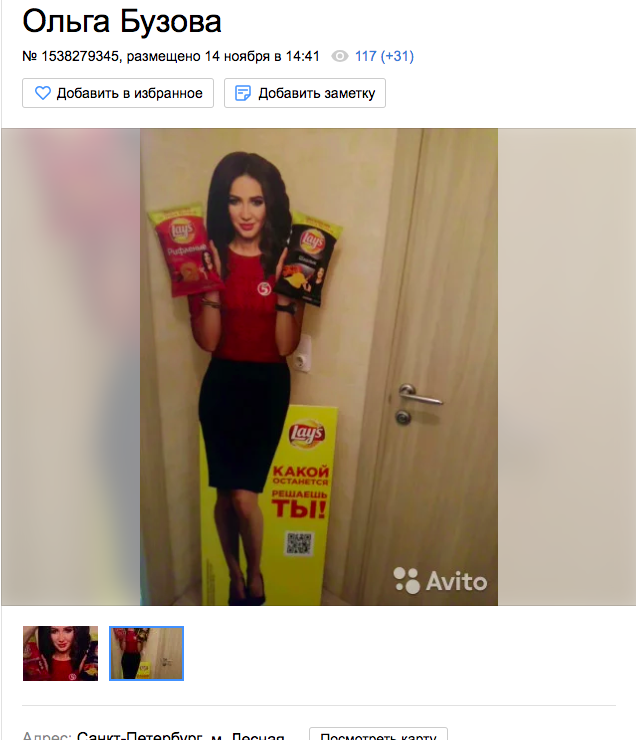 На «Авито» и «Юле» продают картонную Ольгу Бузову. Самую дорогую можно купить в Сестрорецке за 10 тысяч рублей