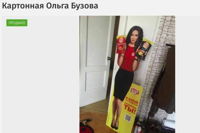 На «Авито» и «Юле» начали продавать картонные фигуры Ольги Бузовой. Несколько недель назад руководство сети магазинов «Пятерочка», где стояли фигуры, разрешило желающим бесплатно их забирать.