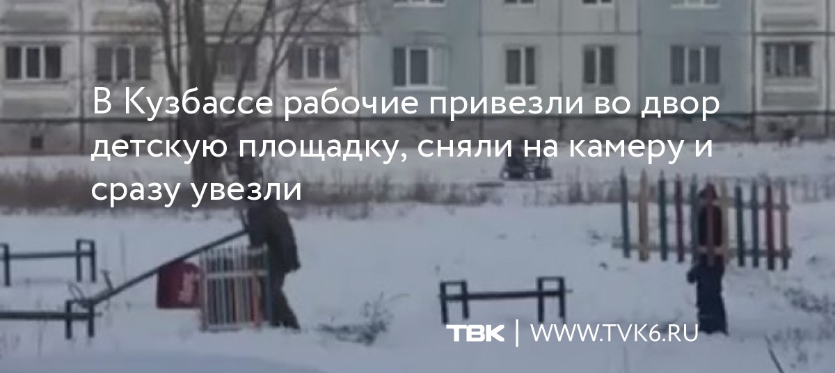 В Кузбассе рабочие привезли во двор детскую площадку, сняли на камеру и сразу увезли