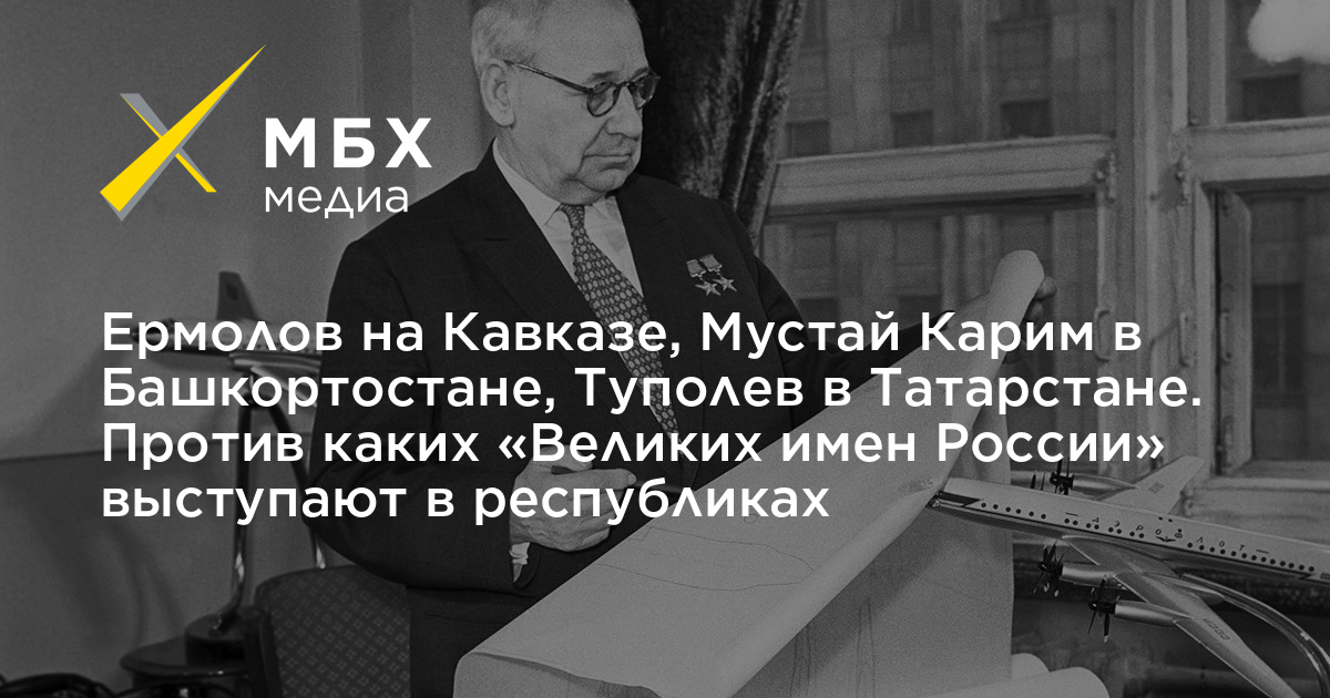 Ермолов на Кавказе, Мустай Карим в Башкортостане, Туполев в Татарстане. Против каких «Великих имен России» выступают в республиках