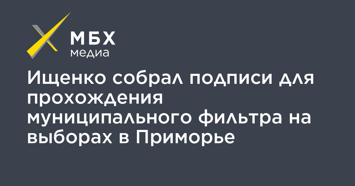 Самовыдвиженец Андрей Ищенко собрал необходимое число подписей для прохождения муниципального фильтра на выборах губернатора Приморского края. Об этом он написал у себя в Facebook.