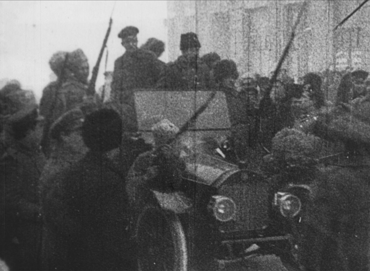 — Да, Сталина в этом фильме нет. Он в 1918 году и не был такой особенно важной фигурой. При этом в фильме тщательно воспроизведены все члены советского правительства, снятые там поголовно. Но, например, если вы посмотрите [фрагмент] про руководителей октябрьского большевистского переворота, то там [показаны] всего три человека — это Троцкий, Луначарский и Коллонтай. Думаю, операторы просто не смогли больше никого снять, потому что это было очень хаотичное, бурлящее время. Это был ноябрь — месяц, когда очень мало световых часов в дне. Очень низкая облачность. Снимать без осветительных приборов внутри помещений нельзя. А на улицу они, собственно, не выходили. Троцкий вышел покурить — тут его и сняли. А, например, Ленин не курил и не выходил на улицу, вот его и не сняли. Это все объясняется довольно прозаическими причинами.