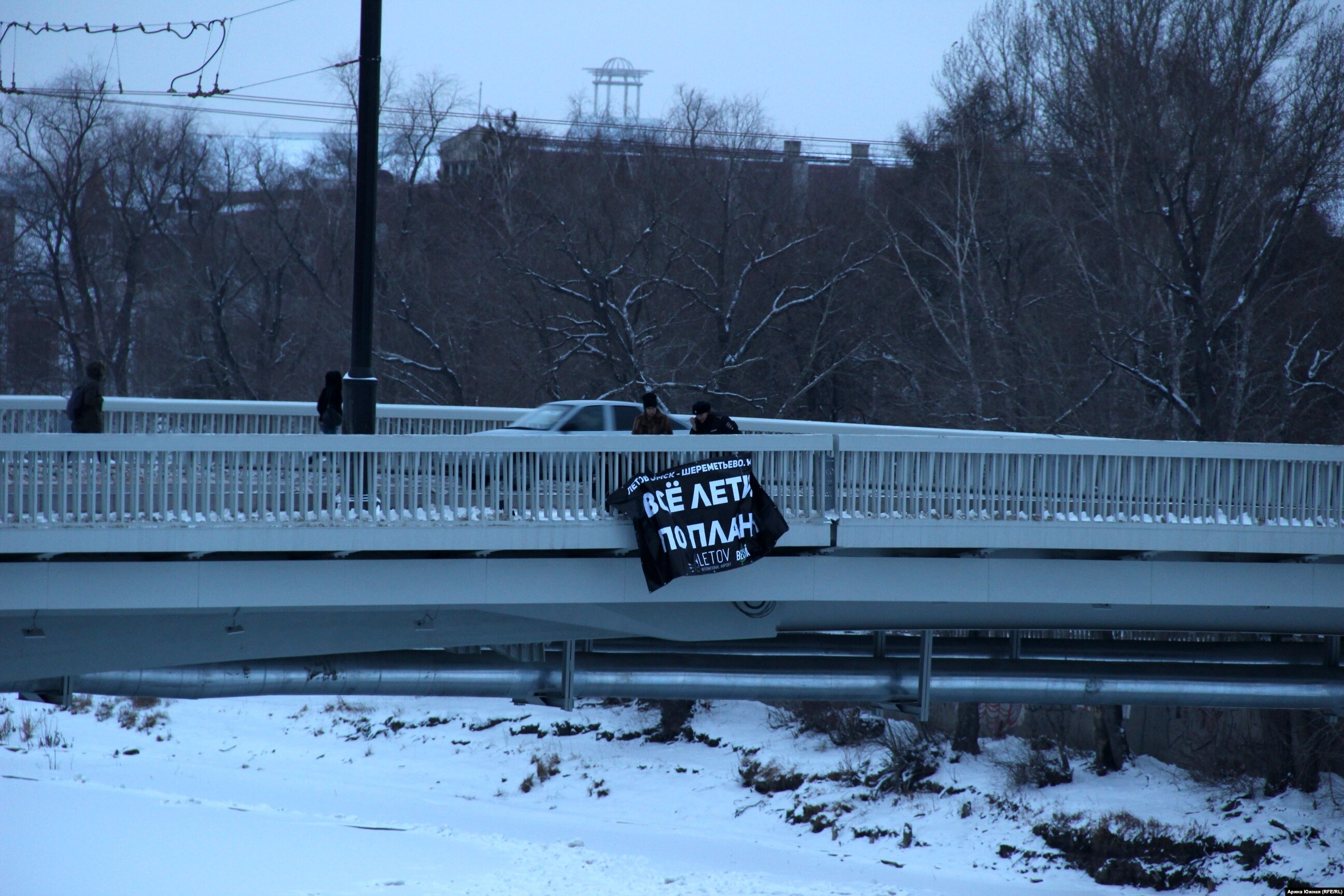 Омск: на мосту вывесили баннер в поддержку "Летов-аэропорта"