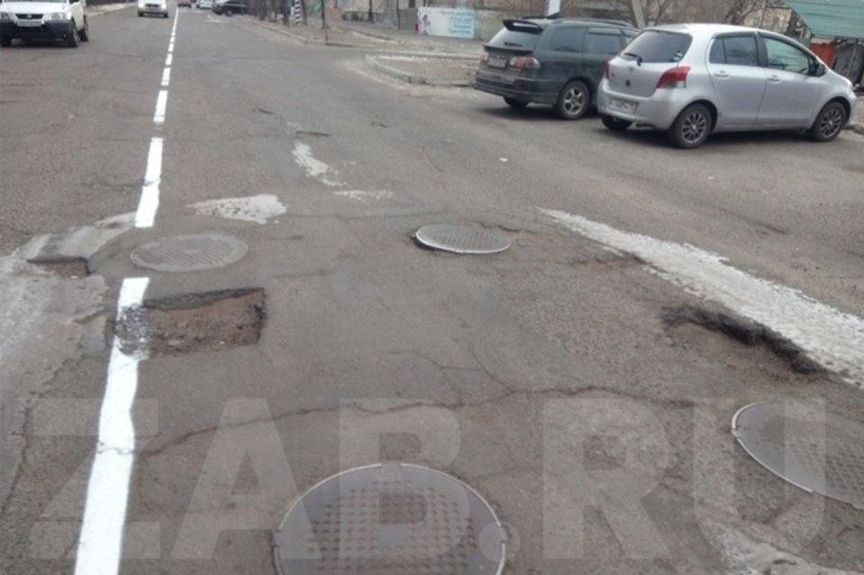 На улице Анохина в Чите дорожные рабочие сделали разметку на разбитой дороге. При этом работы велись при минусовой температуре, сообщил очевидец.