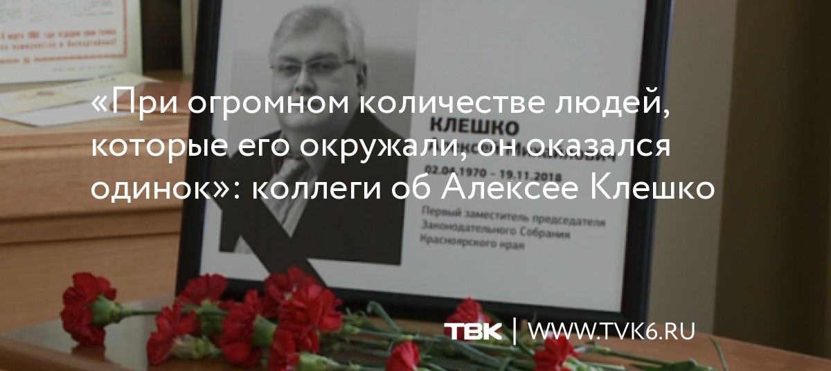 «Странно и страшно ушел из жизни заместитель председателя Законодательного собрания Красноярского края, один из самых ярких и деятельных политиков Алексей Михайлович Клешко... Для нас, КВНщиков, он был неизменным членом жюри, на чей вкус мы ориентировались, порой придумав умную шутку ее тут же называли «шуткой для Клешко». Начинал Алексей Михайлович журналистом и продолжал работать на телевидении...