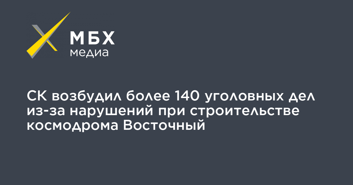 По фактам нарушений при строительстве космодрома Восточный возбуждено более 140 уголовных дел, сообщает ТАСС со ссылкой на заявление официального представителя Генпрокуратуры.