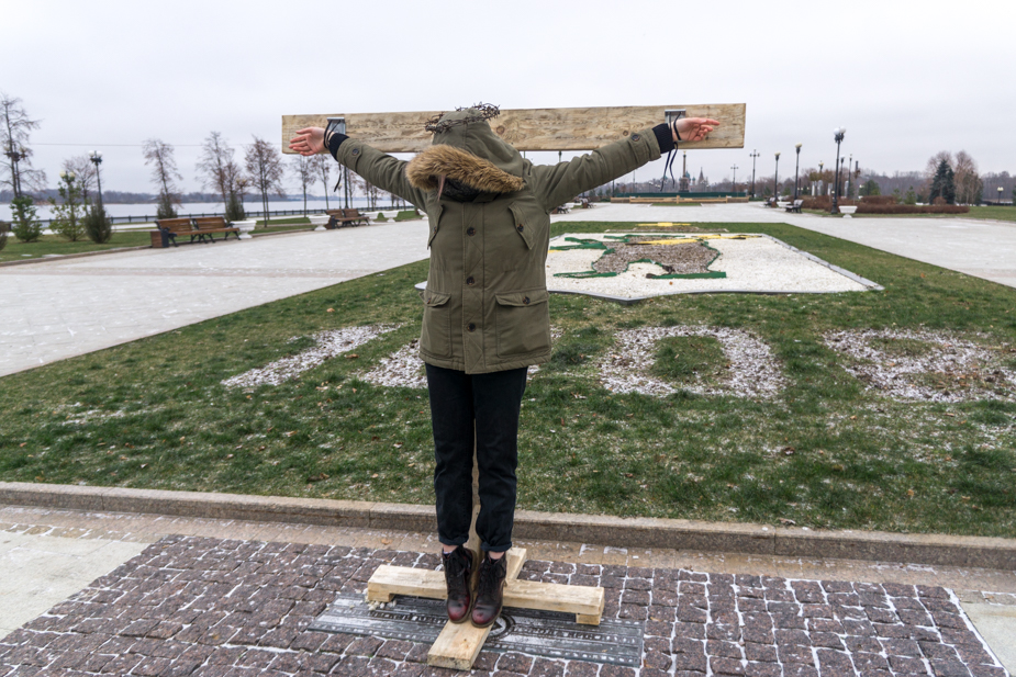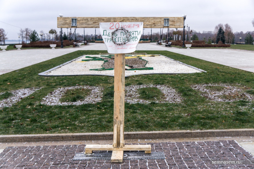 Ярославские ЛГБТ-активисты в день памяти жертв трансфобии (враждебное отношение к трансгендерным и транссексуальным людям), который отмечается 20 ноября, установили на ярославской «Стрелке» крест и распяли на нем символическую жертву. Так они почтили память убитых трансгендеров. Корреспондент «7x7» побывал на месте событий.