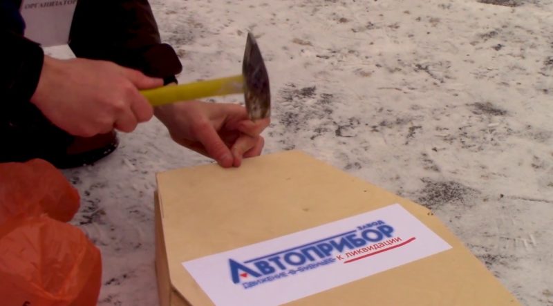 Закончили коммунисты свою акцию небольшим шоу. После инсценировки момента увольнения сотрудников в приготовленный по этому случаю самодельный гроб был опущен некий прибор с символикой завода, после чего была заколочена крышка. Сам гроб активисты оставили на проходной “Автоприбора”.