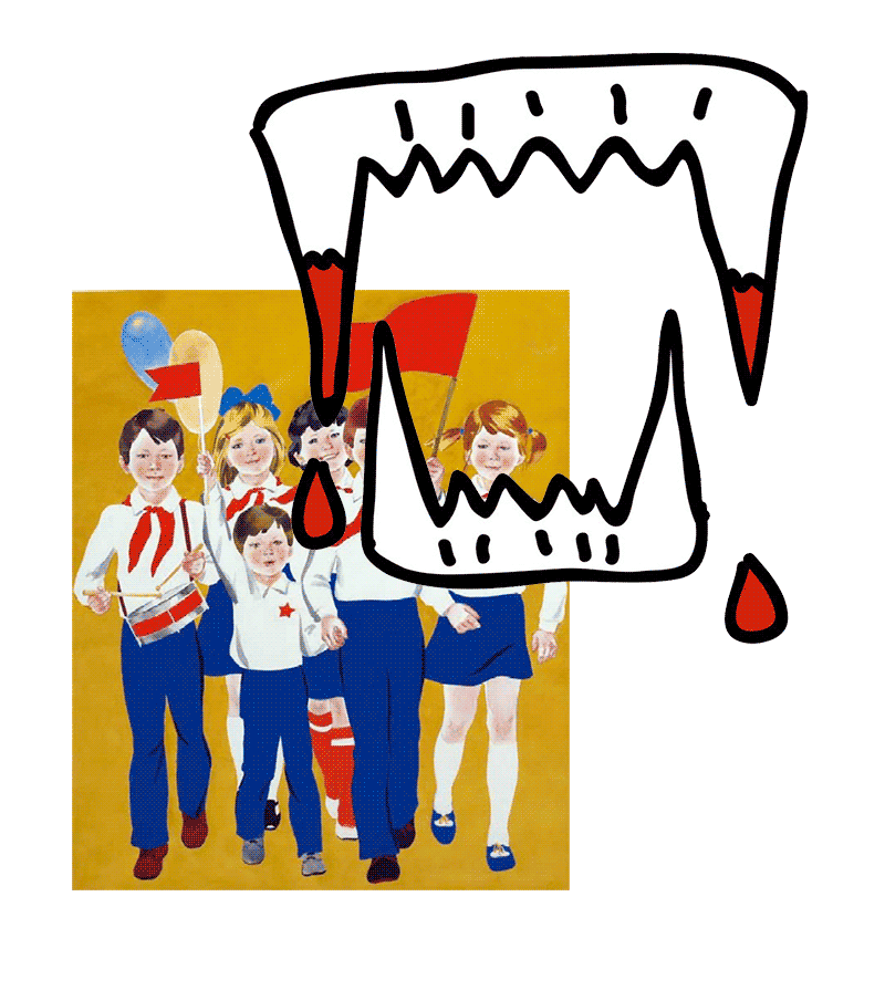 Некоторая, с позволения сказать, историософия, в новом романе все-таки есть. Ностальгия по пионерскому детству тут довольно относительная: видно, что советский опыт для Иванова (по крайней мере, для нынешнего) — не то время, куда ему хочется вернуться. Вампирское и советское в этом романе тесно переплетено. Ну идея как идея, не самая свежая, у Пелевина про связь политики и кровососания есть аж два романа, не самых удачных, но там это подается куда изящнее. А с другой стороны — что вообще может быть банальнее, чем сюжет про школьников на отдыхе и хтоническую нечисть?