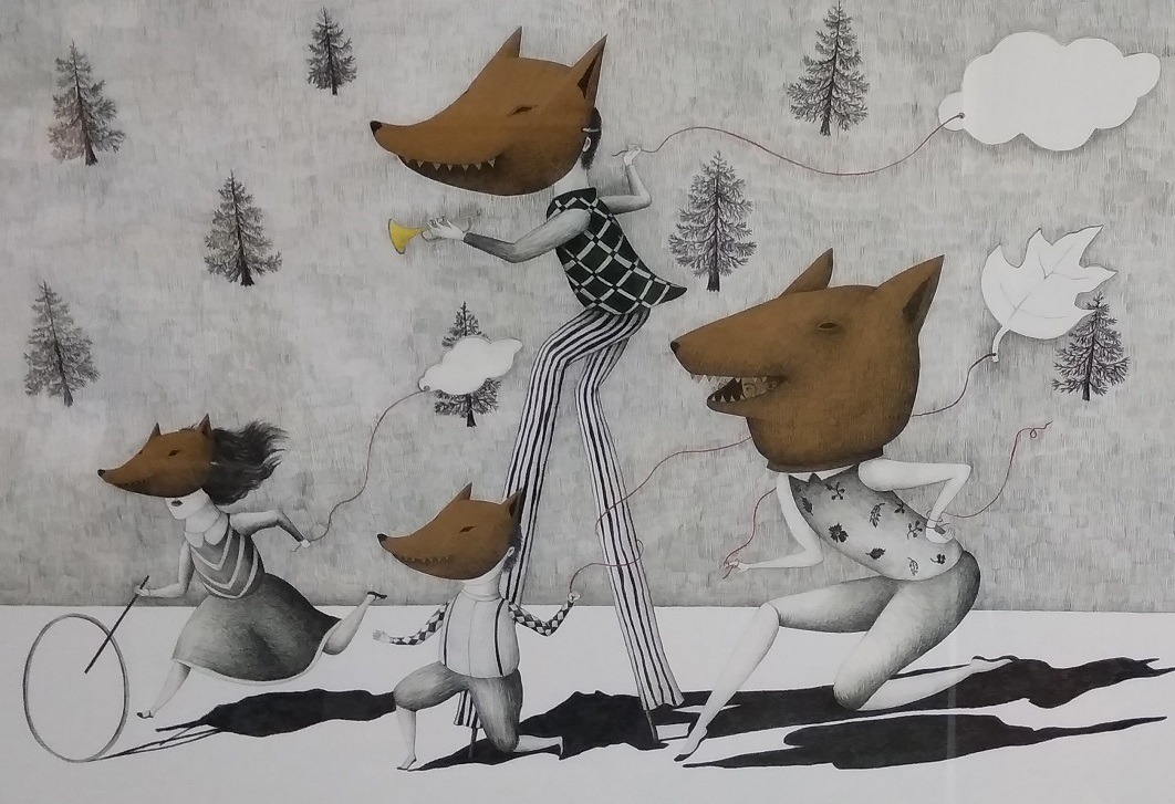 Присутствие Вийве Ноор означает, что обязательно покажут что-то необычное. Эстонские книжные иллюстраторы – одни из лучших в мире. Хотя то, что представлено в библиотеке на Конной, имеет отношение не только к Эстонии. Люсия Мржяк, Джулия Ландонио, Прийт Реа, Елина Силдре, Урмас Виик, Юри Милдеберг… Как видите, имена не только эстонские, но хорватские, итальянские… Хотя живут все художники в Эстонии, и на заданную тему – волков-оборотней – высказались каждый по-своему.