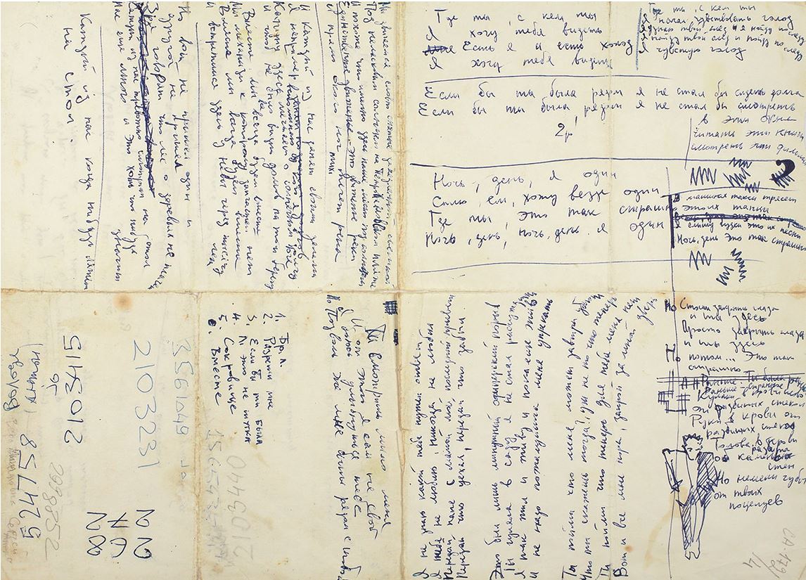 Еще одна очень сильная и чрезвычайно интересная вещь поступила к нам недавно. Это письмо Цоя жене Марьяне, где он очень откровенно пишет о том, как он устал от концертов и хочет где-нибудь закрыться и провести месяц без концертов. Это не просто автограф — письмо раскрывает его как личность. Оно будет продаваться на аукционе 13 декабря.