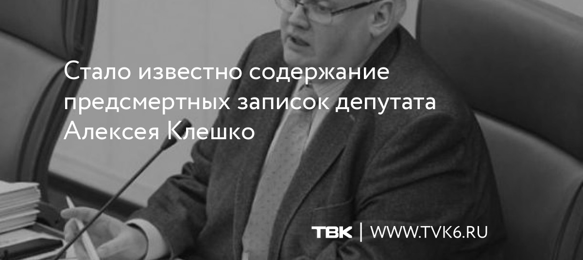 Как сообщил источник Новостей ТВК, в записках Алексей Клешко просит никого не винить в своей смерти. Также он пишет о том, что не хотел бы, чтобы после его смерти устраивали пышные похороны.
