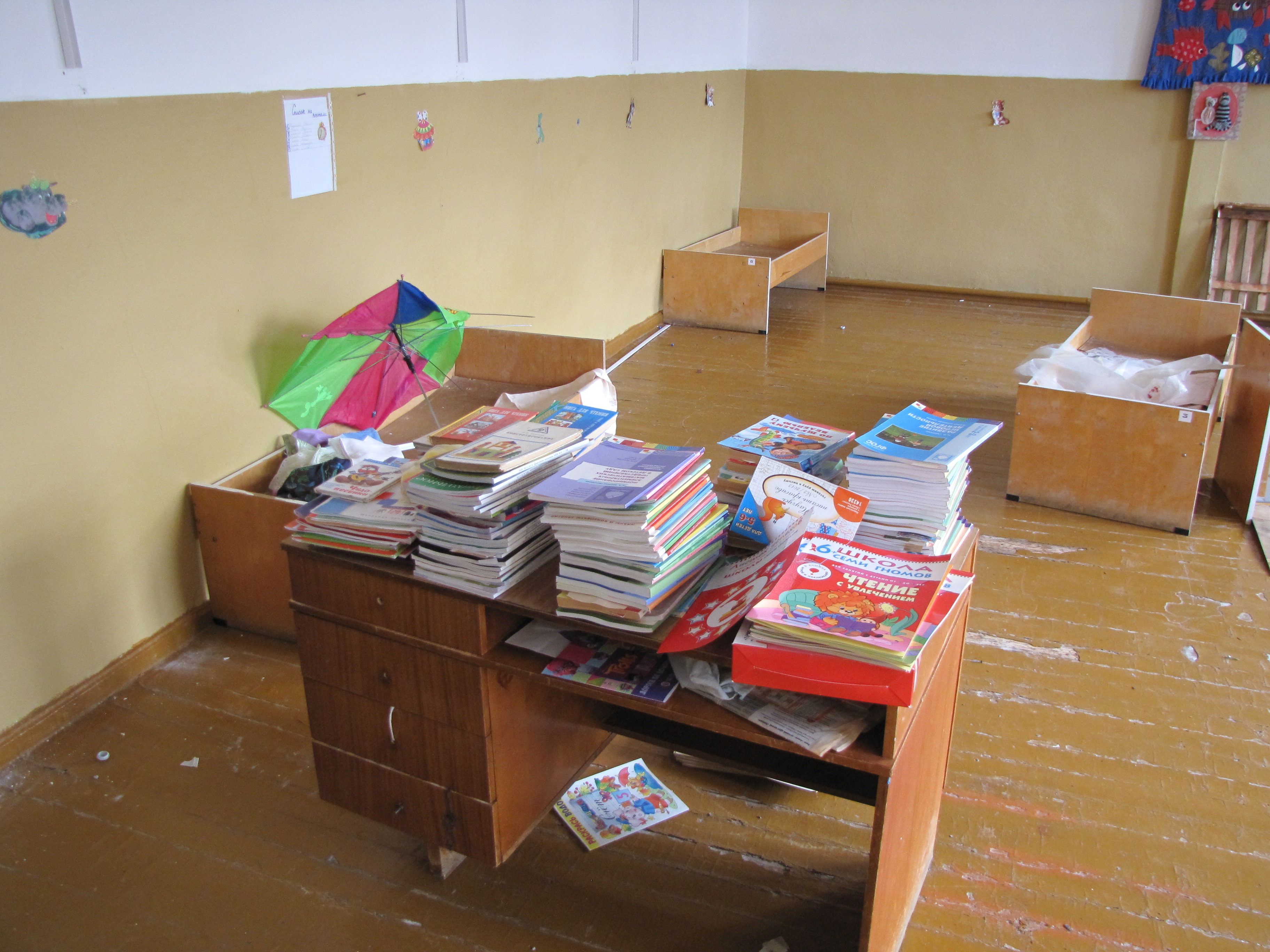 Здание школы и детского сада было готово к учебному году, 7 августа его приняла соответствующая комиссия. Однако через две недели, 23 августа, помещение неожиданно признали непригодным для образовательной деятельности. Сейчас в одном из кабинетов – подпорки, на которых, по словам проверяющих, держится потолок. Сотрудник МЧС также говорит, что в здании отключена пожарная сигнализация и отопление, испорчен электрощиток – правда, все это случилось после того, как школу закрыли.