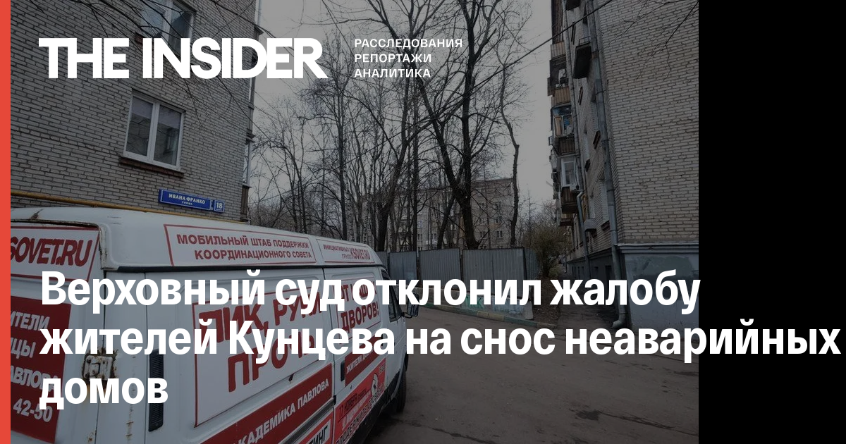 Верховный суд РФ отклонил апелляционную жалобу жителей 47-го и 48-го кварталов Кунцева к правительству Москвы, сообщает корреспондент The Insider. Жители пытались оспорить постановление о реорганизации района, в соответствии с которым группа компаний «ПИК» намерена снести 37 жилых неаварийных домов.