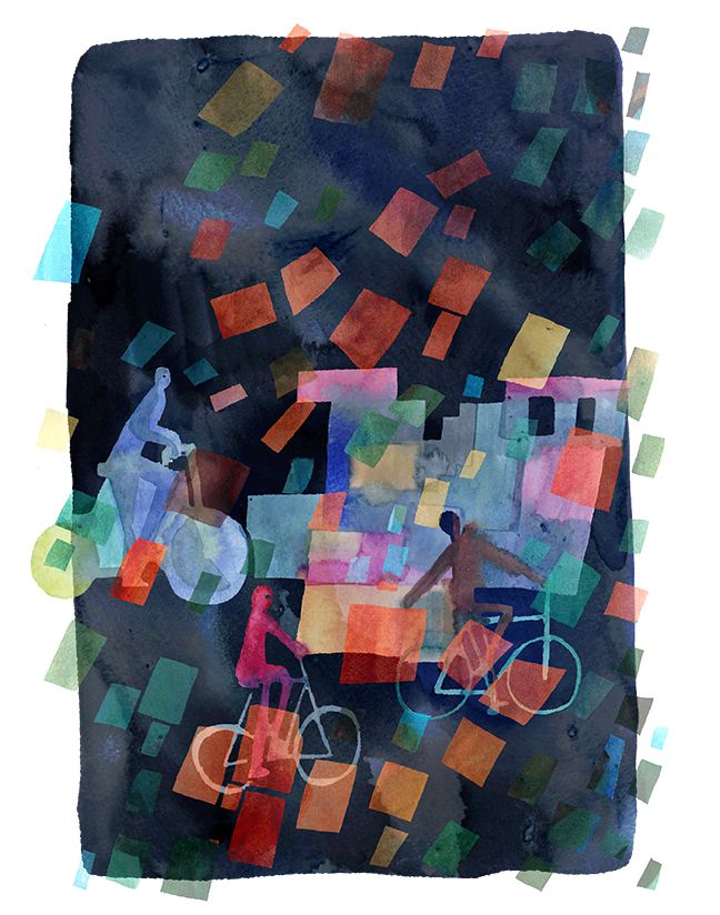 Несколько раз мы приезжали в Лхасу на велосипедах. Ночью, когда свет на улицы падает только из нескольких мутных окон, а хозяйки выплёскивают из окон помои, накопившиеся за день, мы очень любили гонять по закоулкам старого города. Перед глазами словно крутилась архивная киноплёнка, ветер свистел в ушах, и всякий раз я замирал в конце этого опасного аттракциона, когда мы выкатывались на брусчатку Баркора. В воздухе висел стук сотен и сотен деревянных дощечек о камни мостовой.
