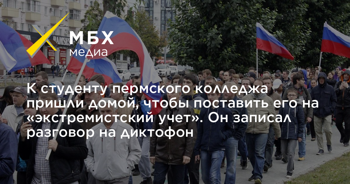 К студенту пермского колледжа пришли домой, чтобы поставить его на «экстремистский учет». Он записал разговор на диктофон