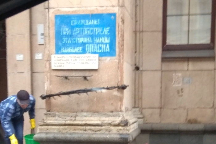 Утром 19 ноября петербуржцы увидели, что оставленная в память о погибших в Ленинграде табличка «Граждане! При артобстреле эта сторона улицы наиболее опасна» закрашена бежевой краской. Днем этого же дня надпись очищал сотрудник 210-й школы, которая находится неподалеку.
