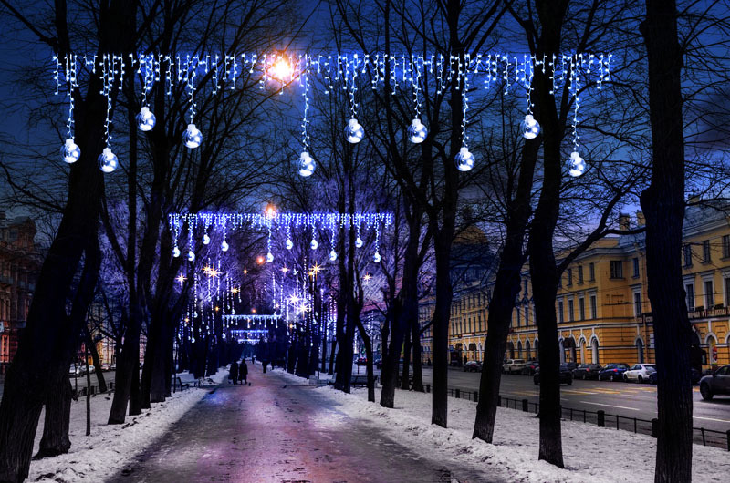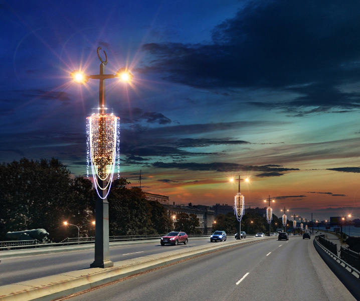 Как украсят Петербург к Новому году — огромные снежинки на Московской площади и Семимостье в гирляндах