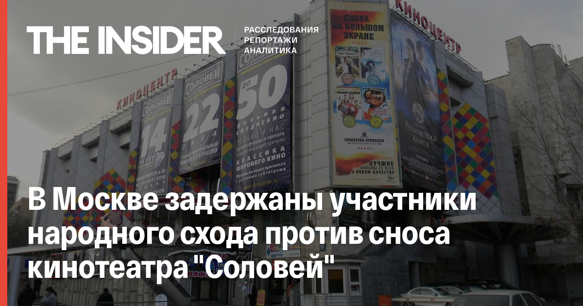 В Москве полицейские задержали участников схода против сноса киноцентра «Соловей», сообщает «ОВД-Инфо». Среди задержанных Антон Омариев, Александр Пелевин Никита Зайцев и Игорь Сафонов, девушка, попросившая не публиковать ее имя, а также один несовершеннолетний.