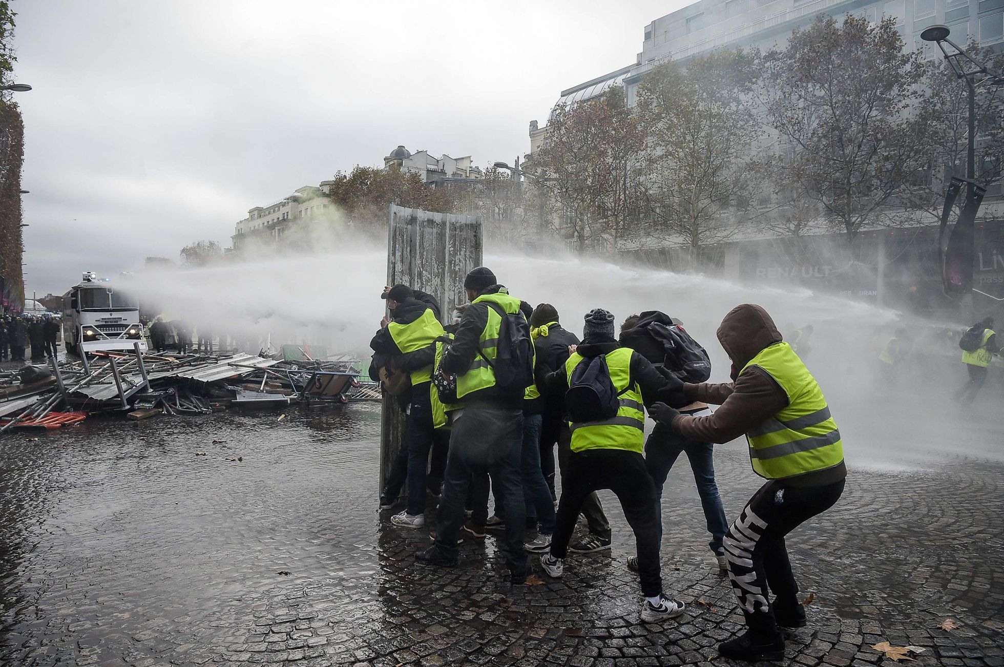 Полиция против «желтых жилетов» в Париже. Они вторую неделю протестуют против цен на бензин. Фотография