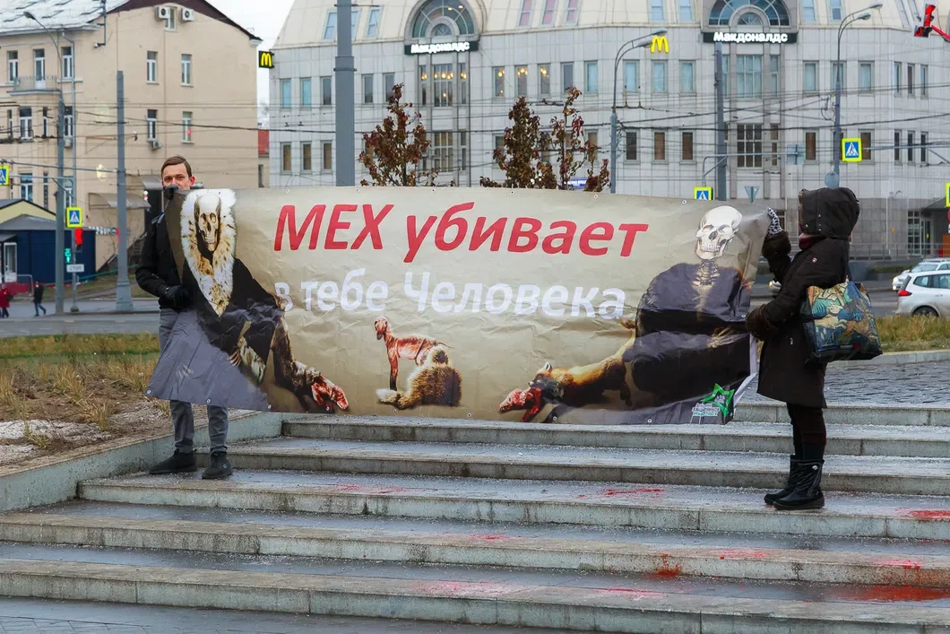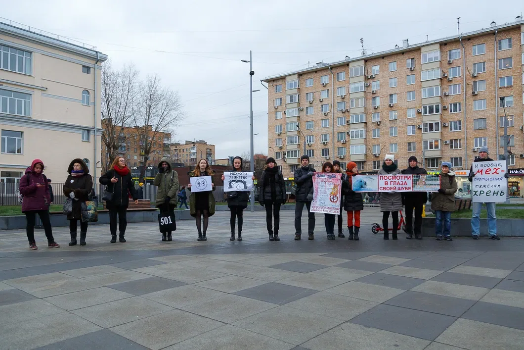 В Москве рядом со станцией метро «Улица 1905 года» зоозащитники провели акцию против ношения меха. Об этом «Новой газете» рассказал один из ее организаторов, руководитель «Альянса защитников животных» Юрий Корецких.