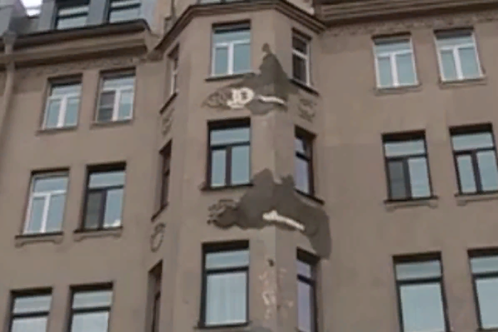 На фасаде дома по адресу Малый проспект Петроградской стороны, 1/3 рабочие попытались восстановить утраченные элементы лепнины при помощи монтажной пены. Об этом пишет «Мойка 78» со ссылкой на очевидцев, сюжет о произошедшем также вышел в программе «Вести» на канале «Россия 1».