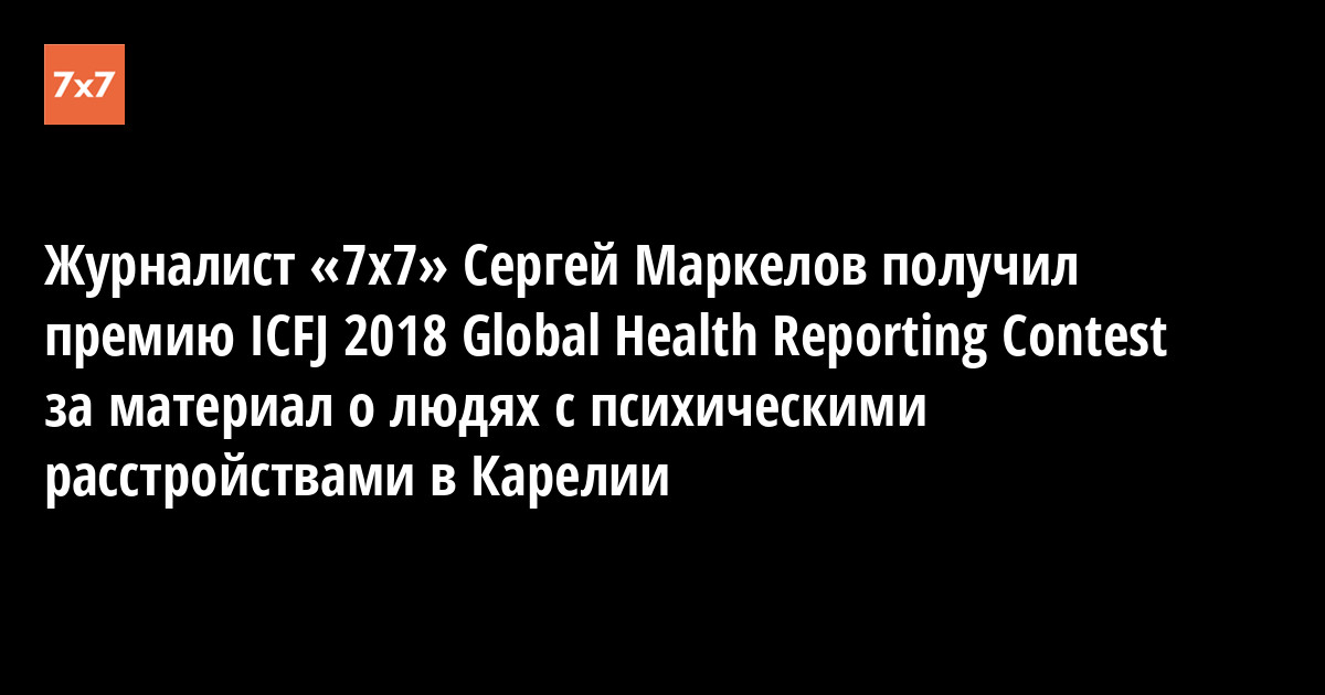 Корреспондент интернет-журнала «7x7» в Карелии Сергей Маркелов стал лауреатом премии ICFJ 2018 Global Health Reporting Contest в области медицинской журналистики за материал «Наедине с одиночеством. Истории людей с психическими расстройствами в Карелии». Об этом он написал в блоге на «7x7» 23 ноября.