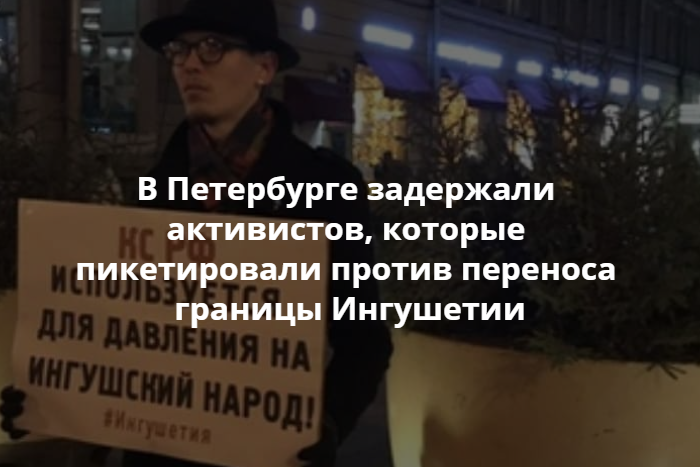 В Петербурге на углу Невского проспекта и Малой Садовой улицы вечером 26 ноября задержали девять активистов. Они участвовали в одиночных пикетах в поддержку протеста народа Ингушетии о переносе границы с Чечней. Об этом сообщает «Группа помощи задержанным» (ГПЗ).