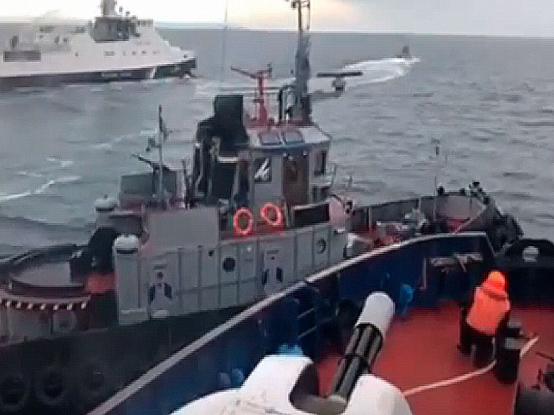 Украинчкие катера в Черном море 112.ua Украинские корабли 25 ноября совершали опасные маневры в районе Керчи. Россия на время закрыла Керченский пролив; он был вновь открыт для гражданского судоходства утром 26 ноября. Меж тем Украина привела свою армию в полную боеготовность. Ее президент и СНБО согласились ввести в стране военное положение на 60 дней.