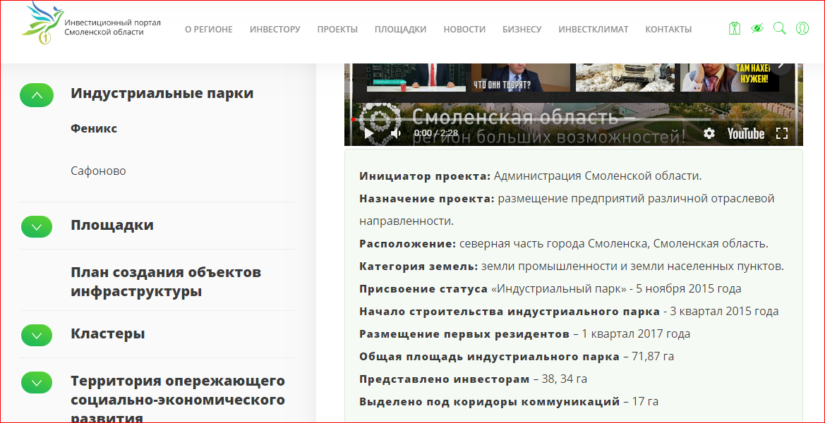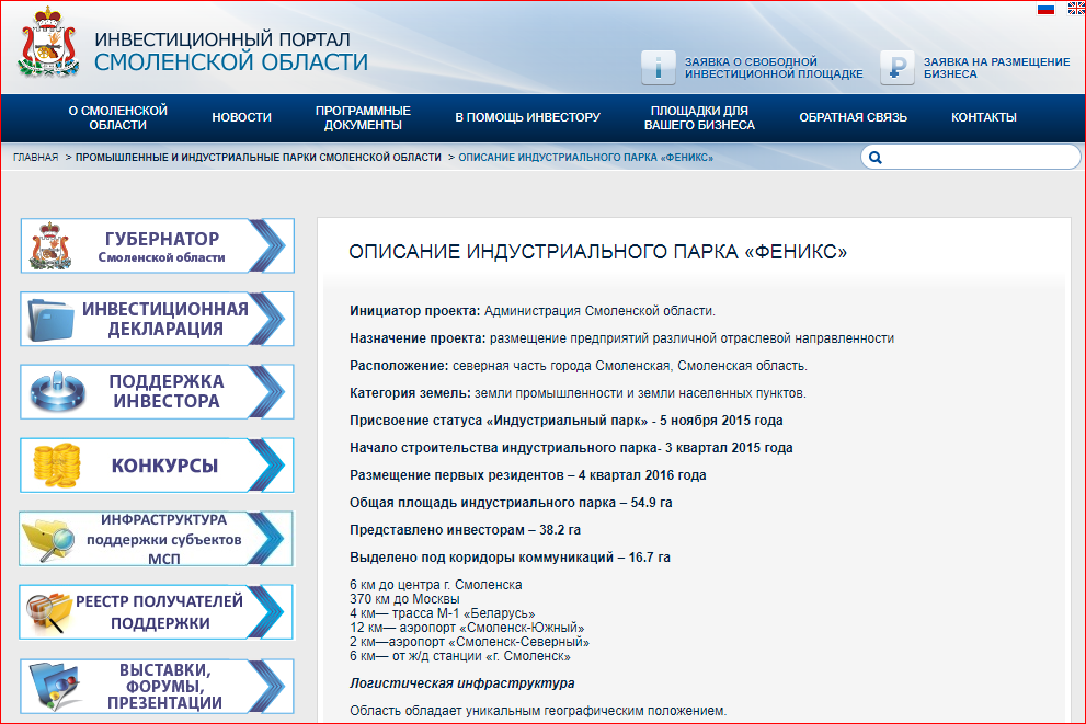 Проследим это по сайту Инвестиционного портала Смоленской области