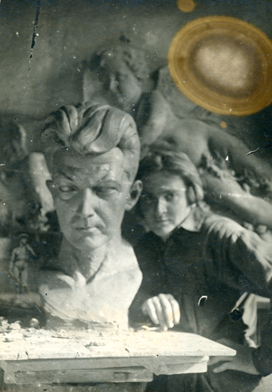 © Собрание семьи Арендт Ариадна Арендт в мастерских ВХУТЕИНа. Москва. Около 1929 г. Обычными материалами для скульптуры нам пользоваться не рекомендовалось, нам предлагали изобрести что-то новое. «Делайте плакат, — говорили нам, — новая скульптура должна походить на кино, чтобы было быстро, к моменту и чтобы воспитывало массы. Старая скульптура отстала от жизни — пока вылепят да отольют, момент уже прошел…»