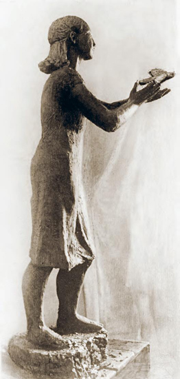 © Государственный Русский музей / Фотография из собрания семьи Арендт Ариадна Арендт. Девушка, выпускающая птицу. Бронза, 170×80×60. 1936 Часто мы совершали экскурсии на крупные ленинградские заводы. Это было интересно. Мы завидовали чернорабочим, глядя на их несложную, всем понятную и полезную работу. Нам же рекомендовали смотреть на машины и изображать их, так как они гораздо красивее и нужнее человека. Присутствие человека в композиции в век индустриализации допускалось как второстепенное или даже третьестепенное приложение к машине.