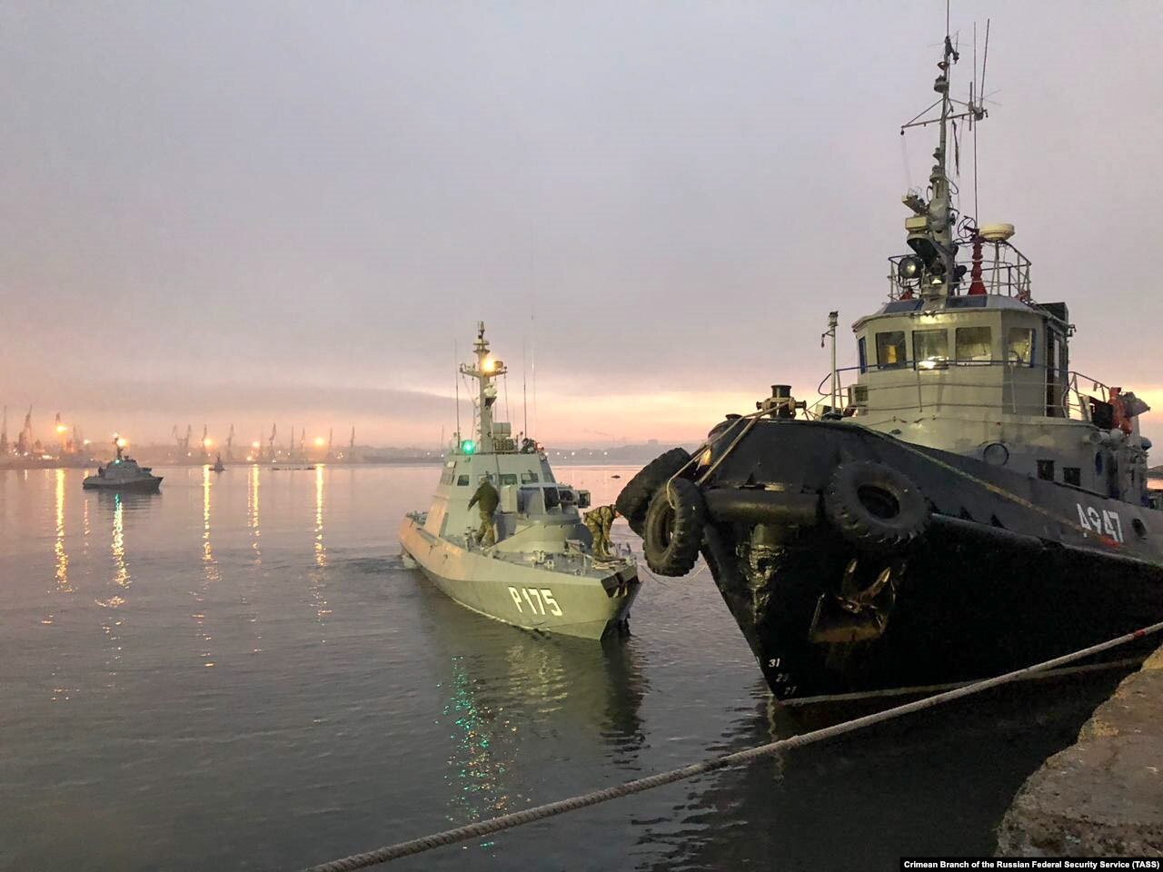Тем временем российский суд в Крыму уже арестовал двоих украинских моряков, задержанных 25 ноября. Как сообщает корреспондент Радио Свобода, Сергея Цыбизова и члена экипажа буксира "Яны Капу" Виктора Варемеза поместили под стражу до 25 января. Сегодня суд изберет меры пресечения и другим задержанным – всего их 24.