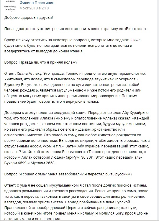 Как сказал его экс духовник РПСЦ о. Герман, Пластинин ищет веру. На пятом десятке лет, он решил веру поискать )))) Правоверные мусульмане умные и не верят таким как Пластинин, раз в год меняющим веру.