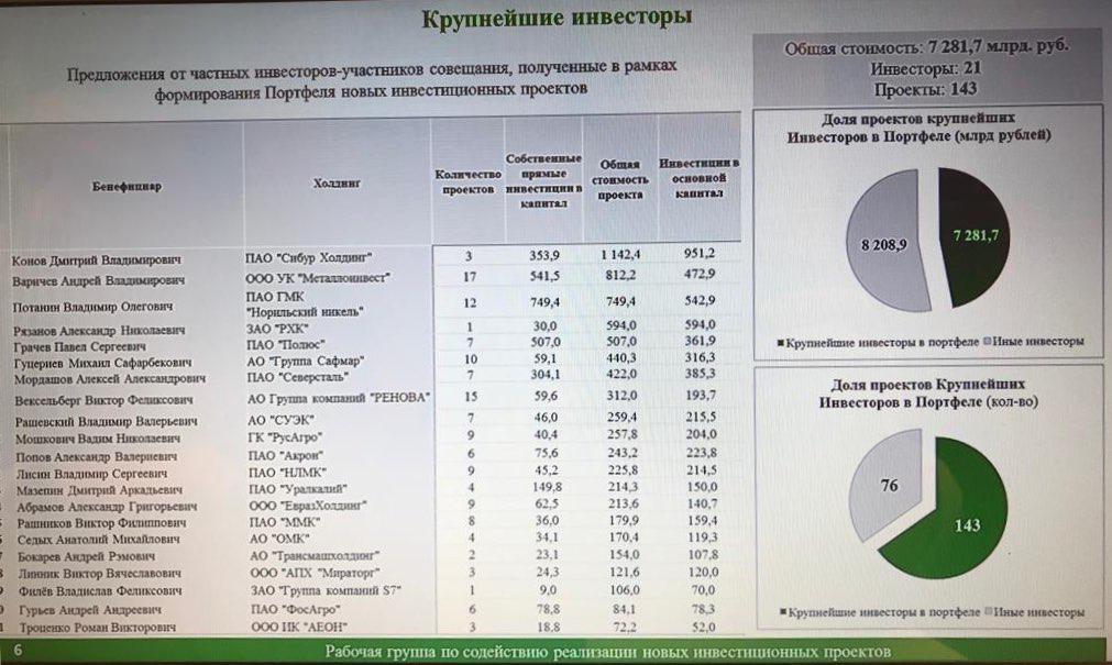 Список инвестпроектов для крупнейших компаний. Источник: телеграм-канал «Незыгарь»