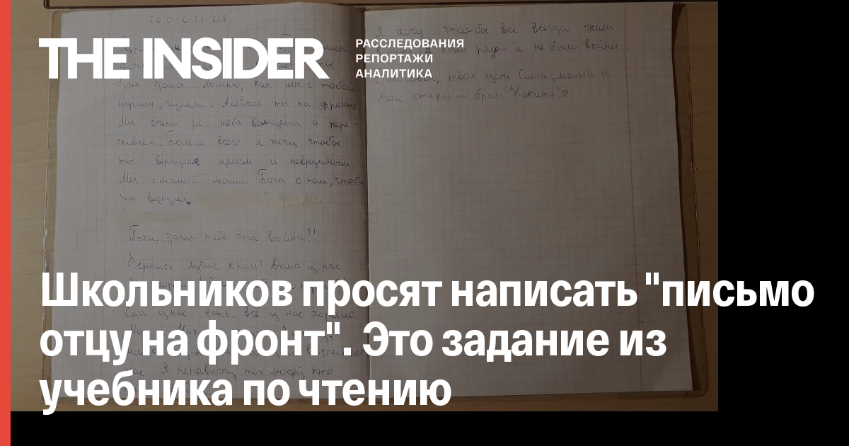 В Санкт-Петербурге ученикам четвертого класса задали домашнее задание — написать письмо отцу на фронт. Об этом рассказала научный сотрудник Российского института истории искусств Ольга Федорченко. Такое задание получила ее дочь, которая учится в 4 классе.