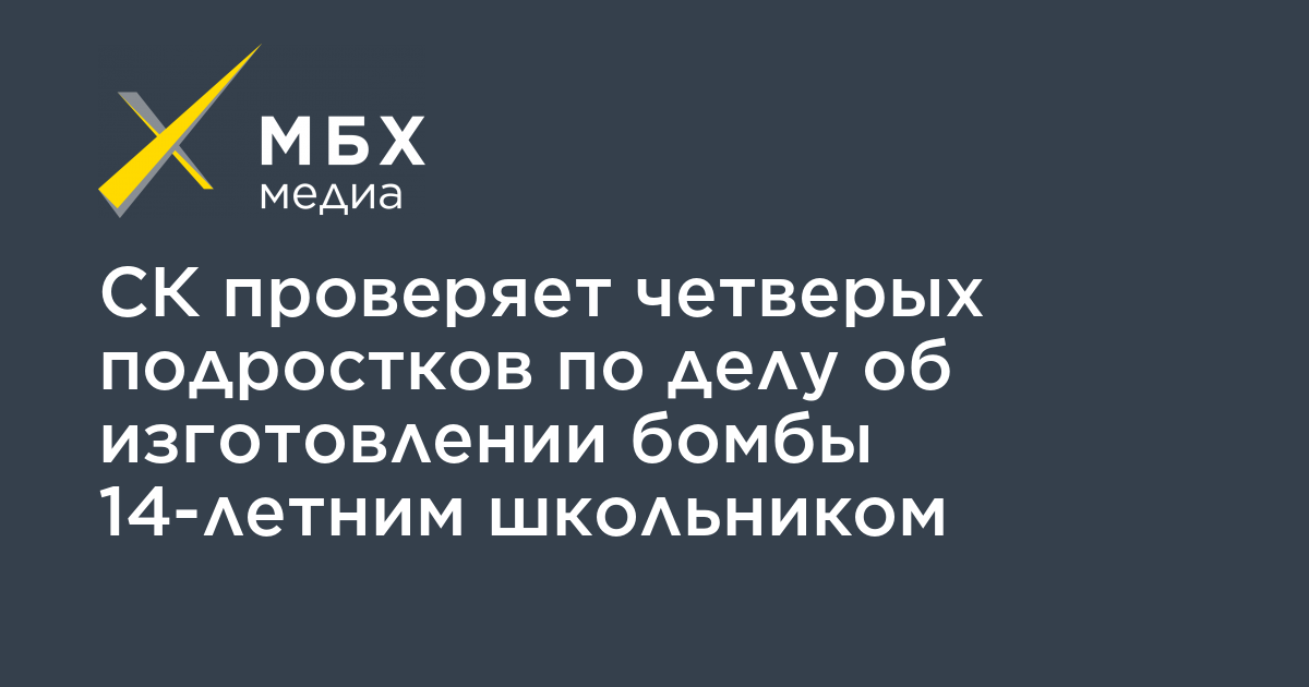 СК проверяет четверых подростков по делу об изготовлении бомбы 14-летним школьником