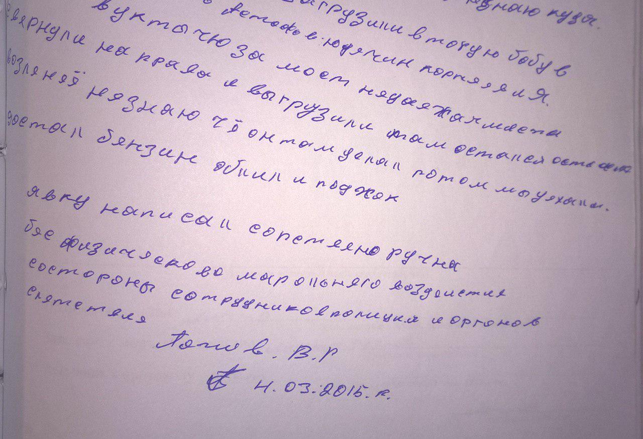 Впрочем, упорствовал Попов недолго — согласно материалам дела, уже через полчаса после очной ставки следователь принял у него явку с повинной. Это 20 строчек почти бессвязного рукописного текста: «4 февраля 2015 года употребляли спиртное на берегу реки Газимур были Корнеев Астафьев Попов две девушки знакомые Юдичина которых мы подошли не знаю на какой улице села Газзавод пока пили спирт между Астафьевым получился конфликт из-за чего не помню был он по пьяной чeта достал из моей машина ударил девушка ана упала на землю. Другая падошла давай ряветь не понял че ревела один ей стукнул и она упала и он ее пнул потом ее загрузили в машину багажник и увязли Астафьев Корнеев не знаю куда. Потом они вернулись и загрузили вторую бабу в багажник» (орфография и пунктуация документа).