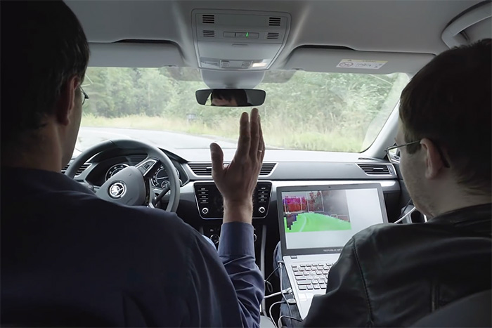 В итоге мы выбрали автомобиль Skoda, так как нам нужно было, чтобы в машине был определенный набор систем — система удержания в полосе, система автоматической парковки и система адаптивного круиз-контроля, что необходимо для плавного торможения. Чтобы сделать беспилотник, было необходимо, чтобы рулевое управление автомобиля воспринимало сигналы извне.