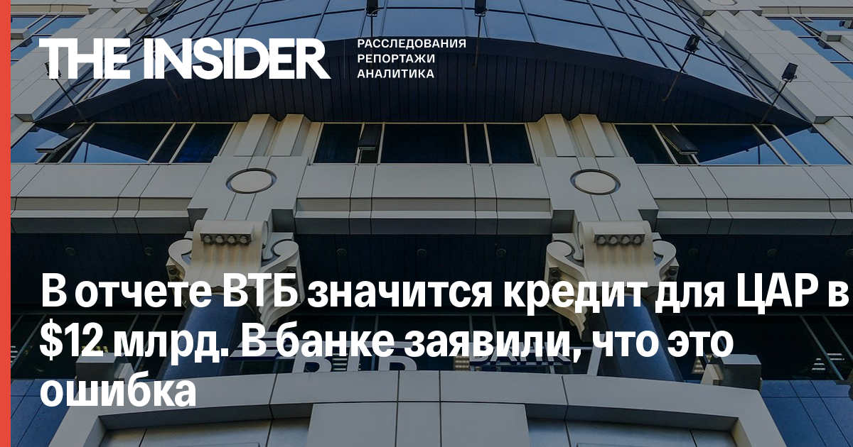 В отчете ВТБ значится кредит для ЦАР в $12 млрд. В банке заявили, что это ошибка