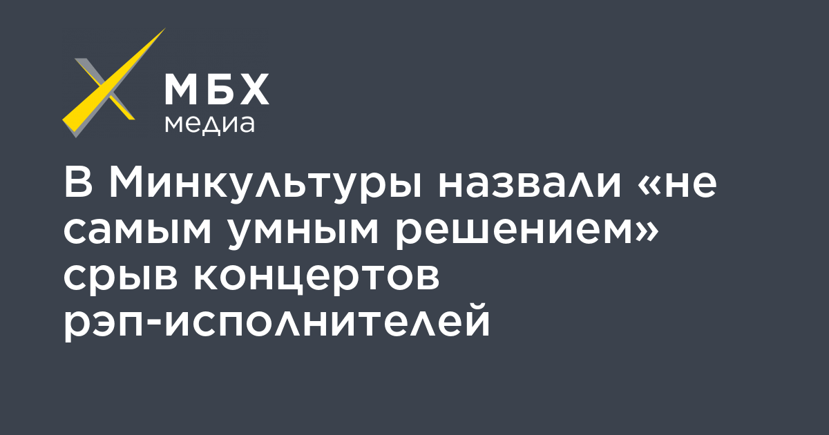 Представитель пресс-службы Министерства культуры Юрий Бондаренко назвал «не самым умным решением» срыв правоохранительными органами концертов рэп-исполнителей. Его слова передает «Говорит Москва».