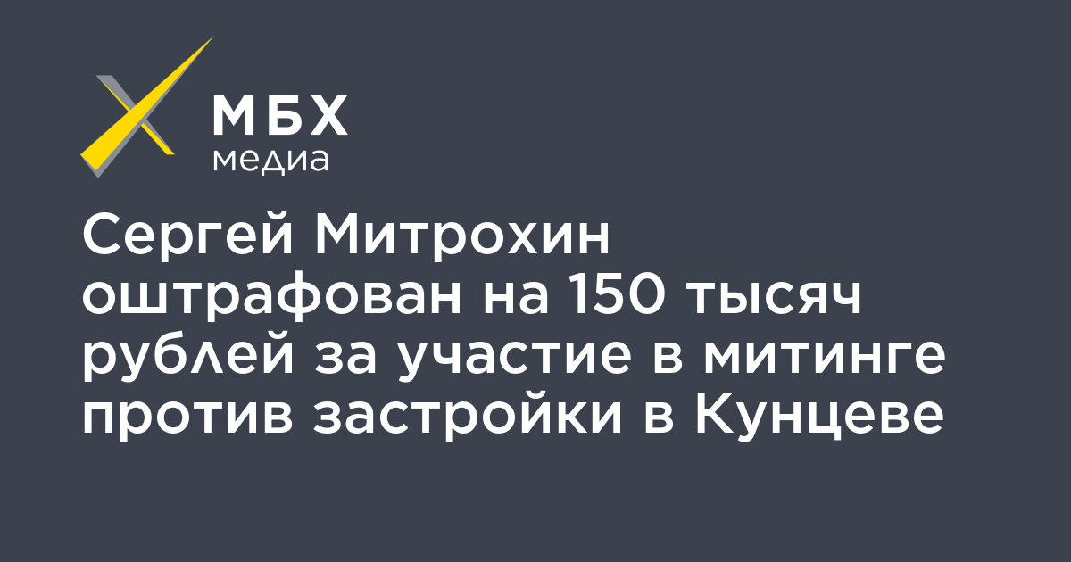 Кунцевский районный суд постановил оштрафовать экс-главу московского отделения партии «Яблоко» Сергея Митрохина, участвовавшего в митинге против застройки в Кунцеве, на 150 тысяч рублей, об этом он сообщил у себя в Facebook.