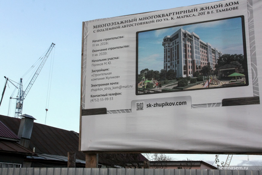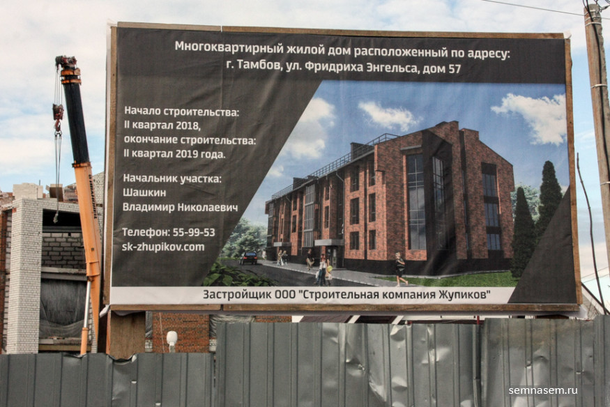 Сначала строить жилье в квартале пыталась компания «Тамбовхимпромстрой». Она не смогла добиться, чтобы территорию перевели в зону многоэтажного строительства, поэтому начала строить только трехэтажный восьмиквартирный дом, но не достроила. В ноябре 2017 года Ленинский районный суд приговорил генерального директора строительной компании к лишению свободы на шесть лет в колонии общего режима за мошенничество в особо крупном размере. Стройка остановилась. Жители предположили, что достраивать дом будет все та же компания Жупикова.