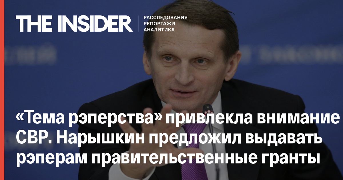 Директор Службы внешней разведки России Сергей Нарышкин предложил министерству культуры выдавать рэперам правительственные гранты, передает ТАСС.