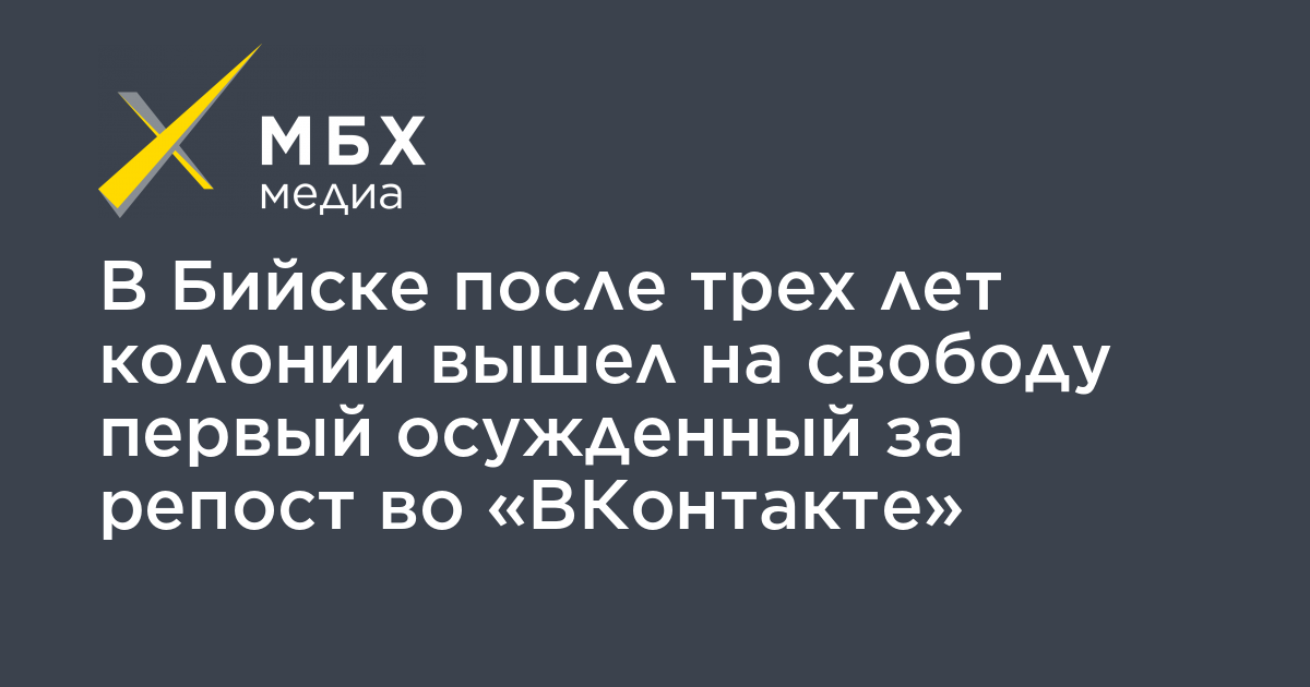 В Бийске после трех лет колонии вышел на свободу первый осужденный за репост во «ВКонтакте»