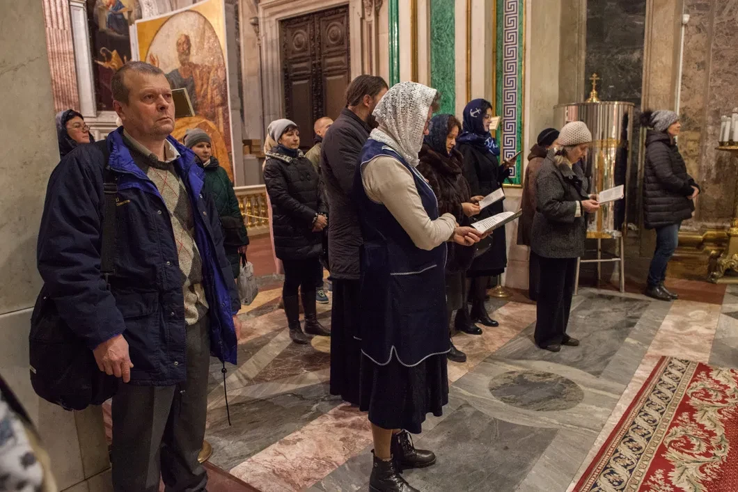 Паства пока индифферентно отнеслась к призыву митрополита: вчера наш фотокорреспондент зафиксировал на вечерней службе в Исаакии с десяток молящихся.