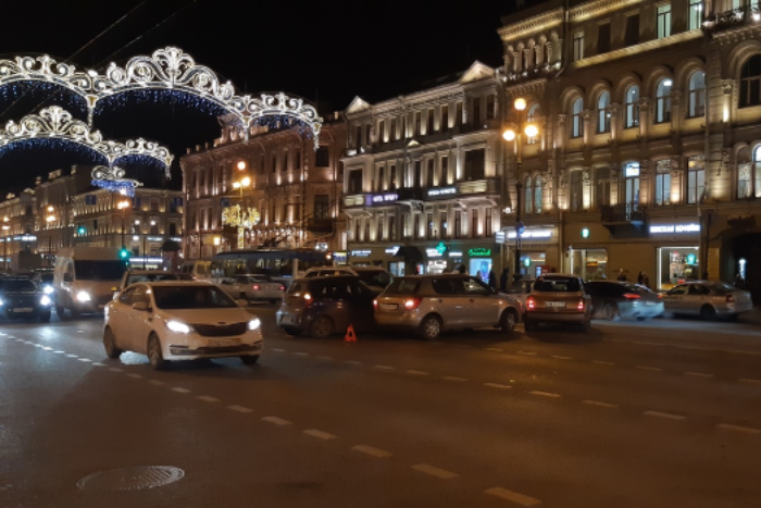 В группе «ДТП и ЧП» очевидцы поделились фотографиями с ДТП на перекрестке Невского проспекта и улицы Марата. Столкнулись сразу четыре машины.